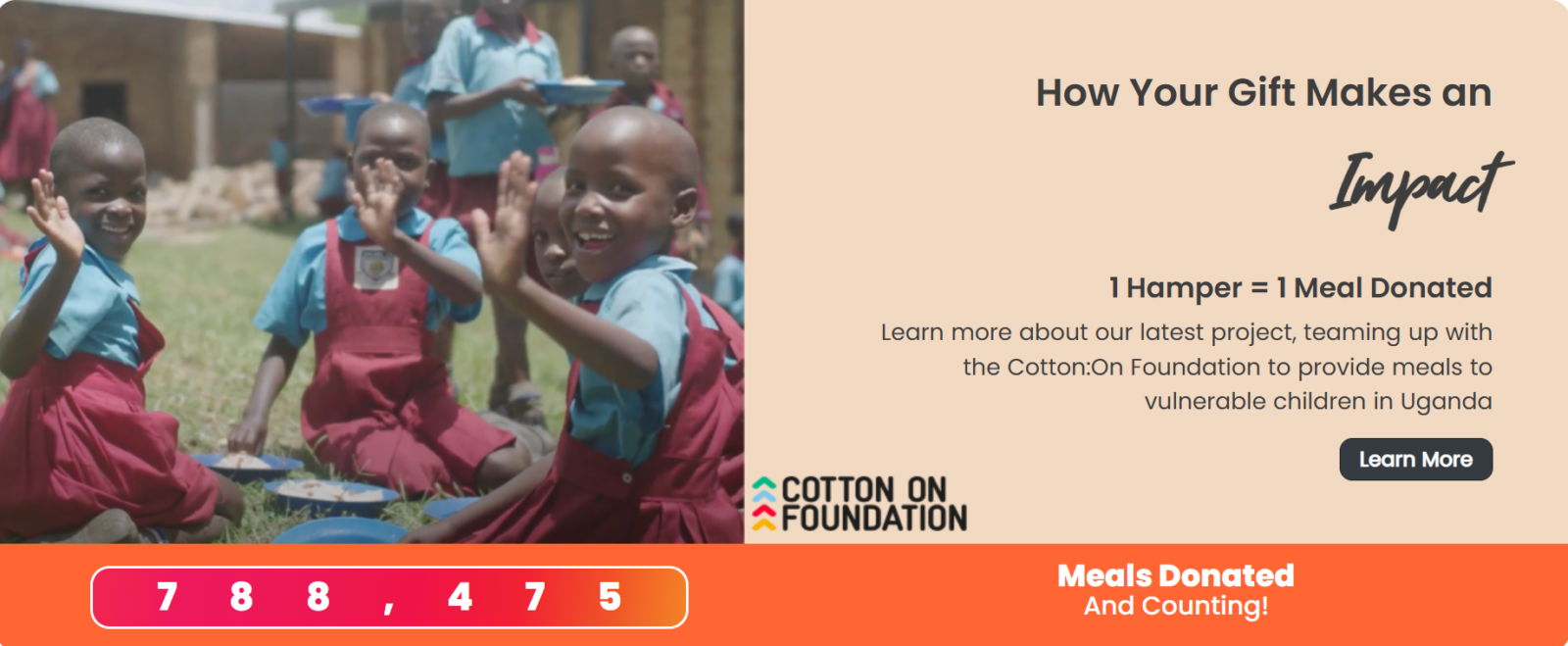 Through their partnership with the Cotton: On Foundation, every hamper purchased contributes directly to providing meals for vulnerable children in Uganda. This means that each Christmas gift we send out this year plays a small but meaningful part in helping a child receive a nutritious meal — a simple gesture with a powerful impact.